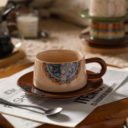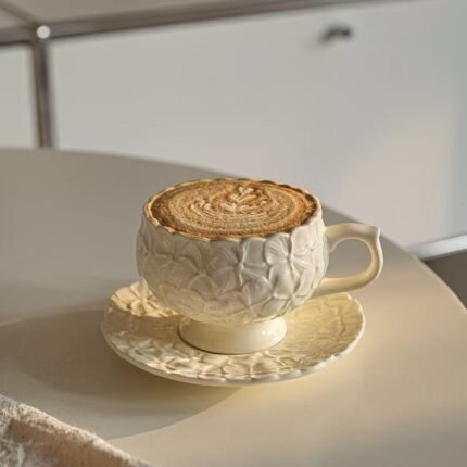Crafted from high-quality ceramic, this coffee cup set offers unmatched durability, ensuring it withstands everyday use without compromising its refined look. The cups are perfectly sized for lattes, cappuccinos, and mochas, while the paired saucers enhance functionality and add a touch of sophistication. The sturdy yet lightweight design promises a delightful drinking experience, with smooth edges that feel comfortable against your lips and a handle that is easy to grip.