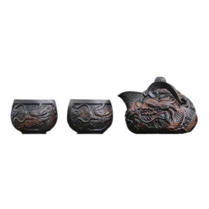 Carved Dragon Purple Clay Tea Set