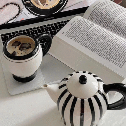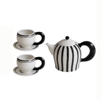 Black and white striped ceramic tea set